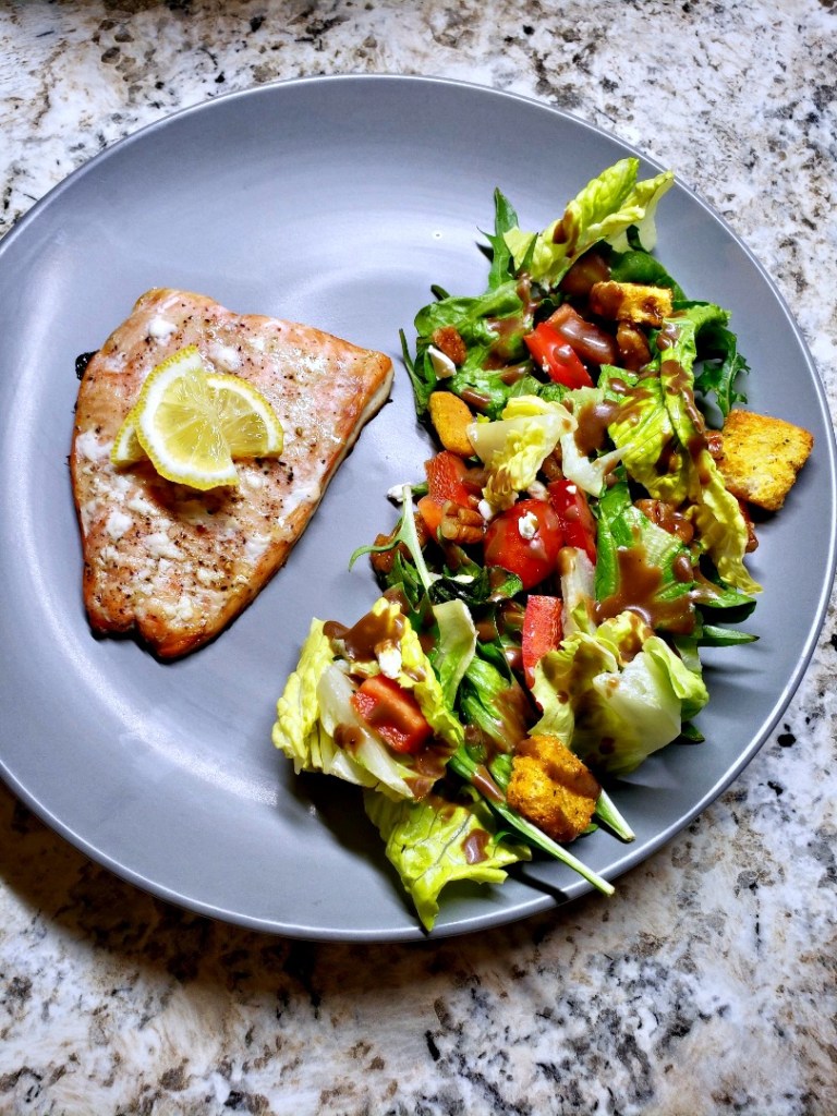 Alright. I gave you guys a drink and some sides, but now you need something to go with those sides. This lemon salmon is sweet and tart at the same time, and is delicious!