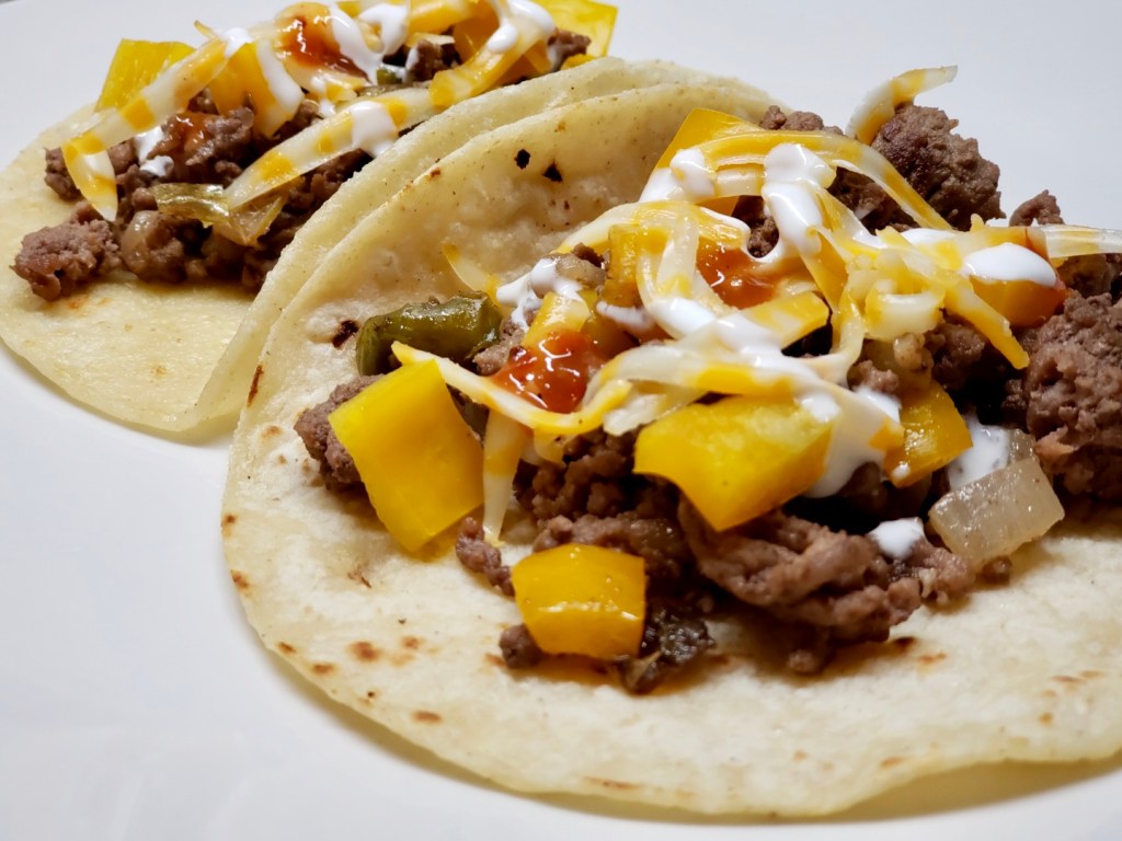 Who doesn’t love a good taco? I mean, tacos are one of the best foods you can eat, and I have a blast making different types. This recipe includes ground beef, two different peppers, and of course, cheese.