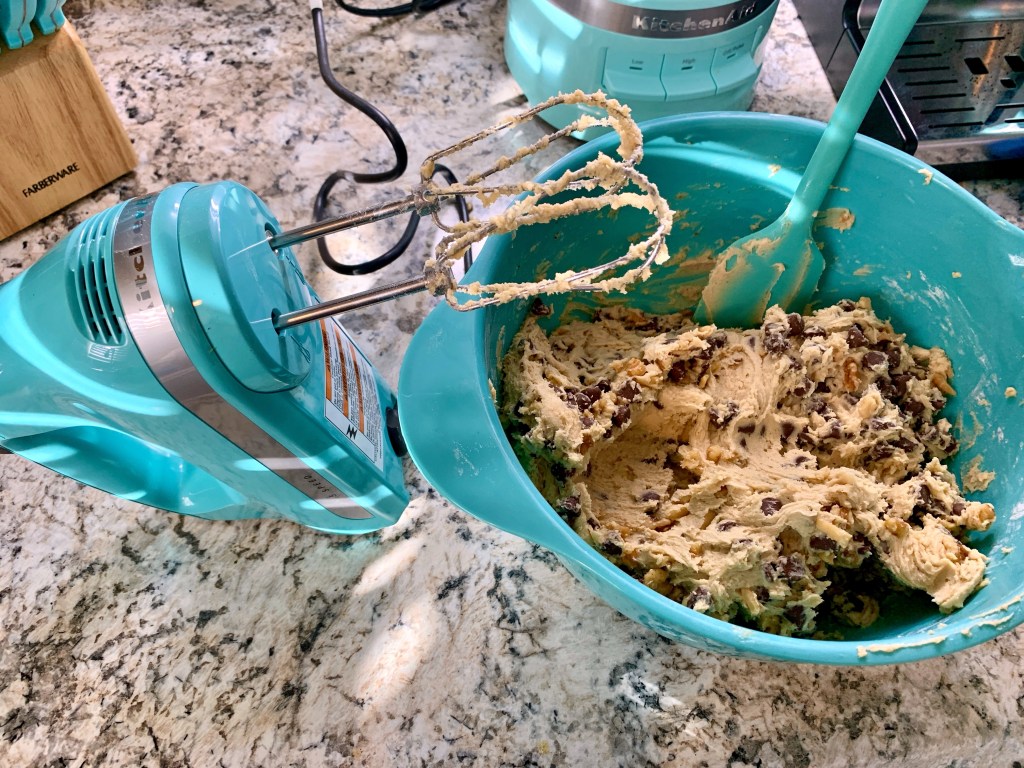 - Once all mixed, fold in the chocolate chips and walnuts.