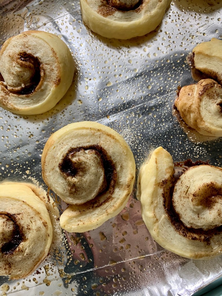 - Place onto a greased baking sheet and sprinkle more cinnamon and sugar over the top. Bake at 350° for 25-30 minutes.