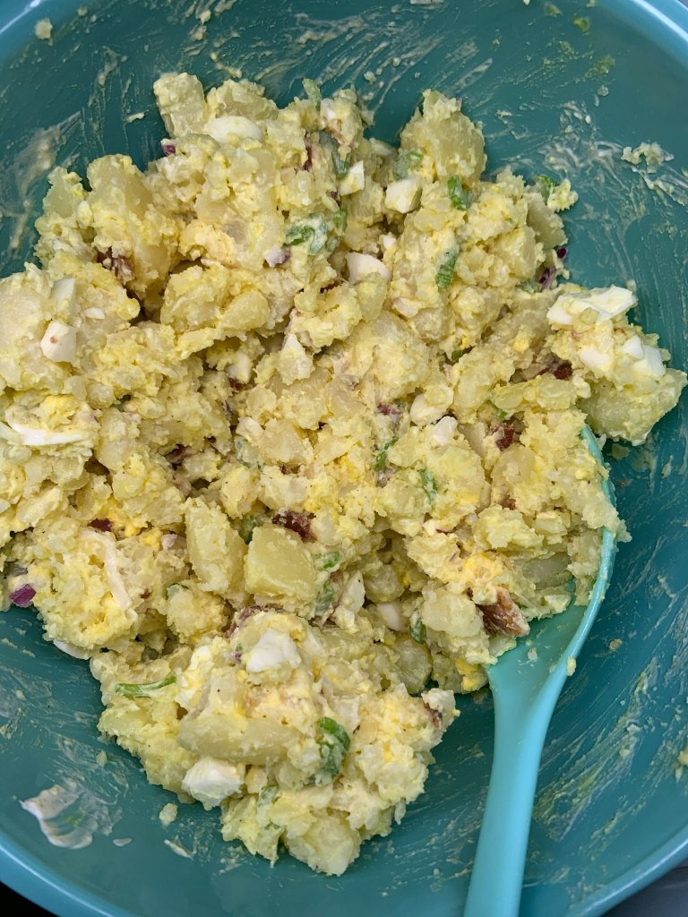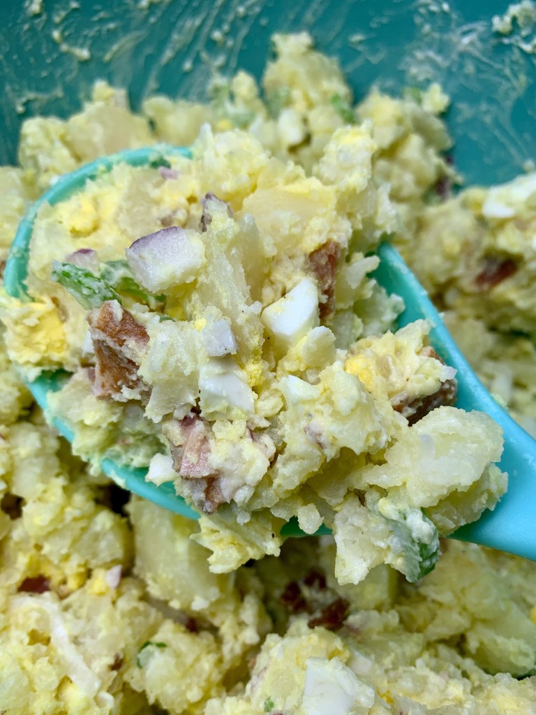 I have a summer recipe to share with you today and I’m really excited about it. This is the first potato salad I’ve made, and it was so good! I made this for my dad when he was visiting, and he loves bacon so I decided to add it into the potato salad. Such a good choice!